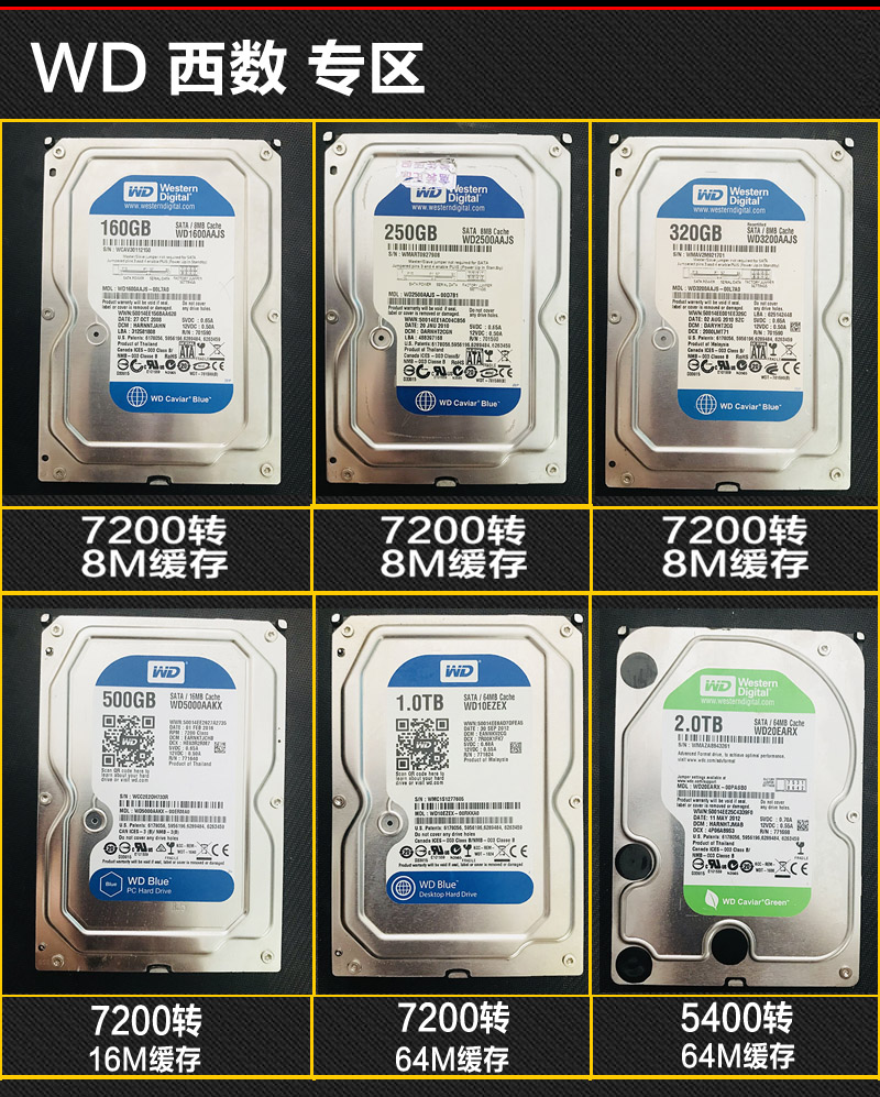 台式机机械硬盘 320G 500G串口单碟双碟硬盘 拆机1T 2蓝盘/薄盘